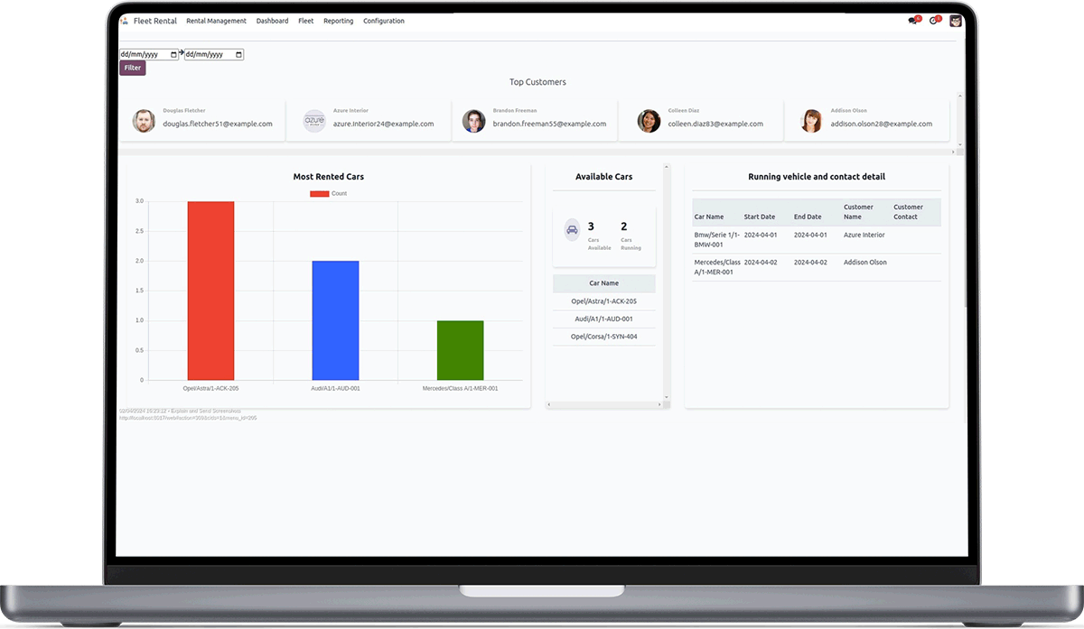 This Dashboard Module Enhances the Fleet Rental Management System by Offering a Centralized View of Crucial Metrics and Analytics.