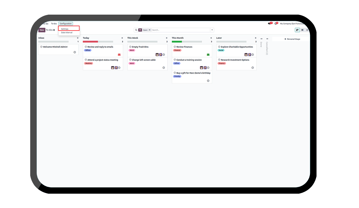 Prioritise notes in Odoo using vibrant colors.