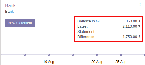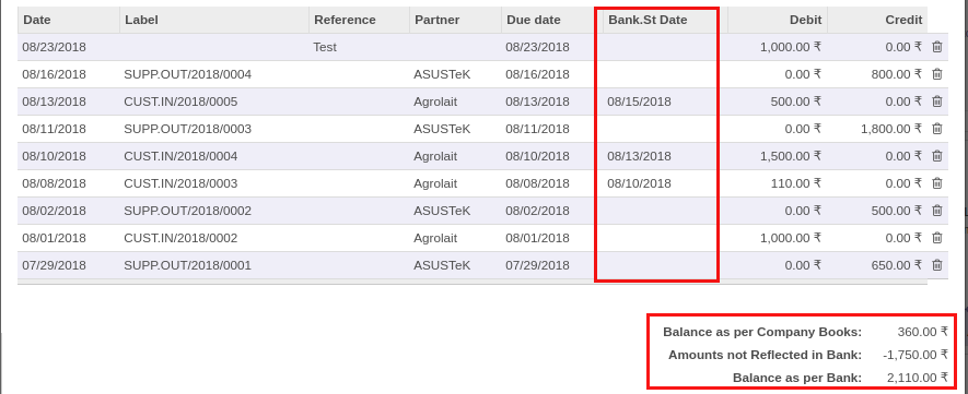 You can see the details about the current balance as per company books, bank balance based on already reconciled journal entries as 'Balance as per bank' and difference between them as 'Amount not reflected in Bank'