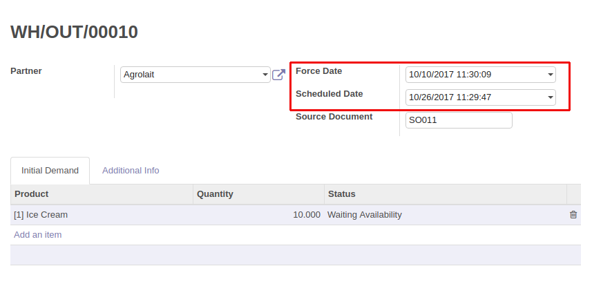 User can give a specific date as 'Force Date' in Stock Picking