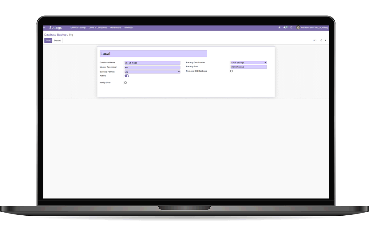 Got Setting --> Technical --> Backup Configuration to configure backups
