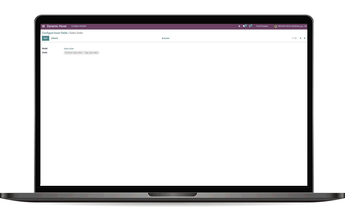 Go to Dynamic Hover -> We can see the configured models and fields.