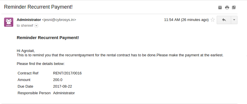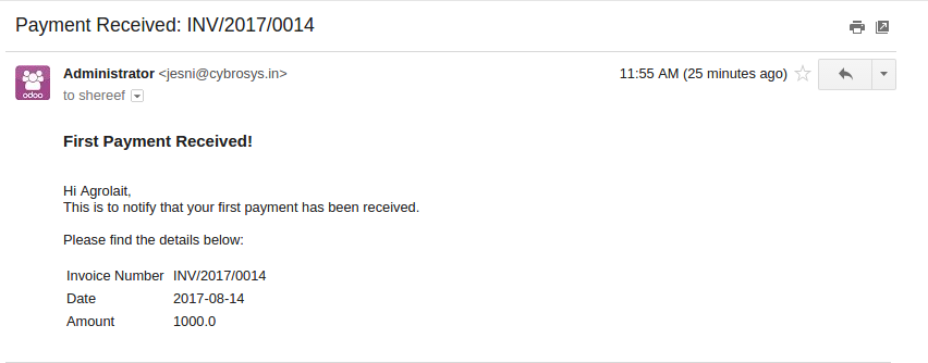 Note:- You should configure outgoing and incoming e-mail settings from your odoo for email service.