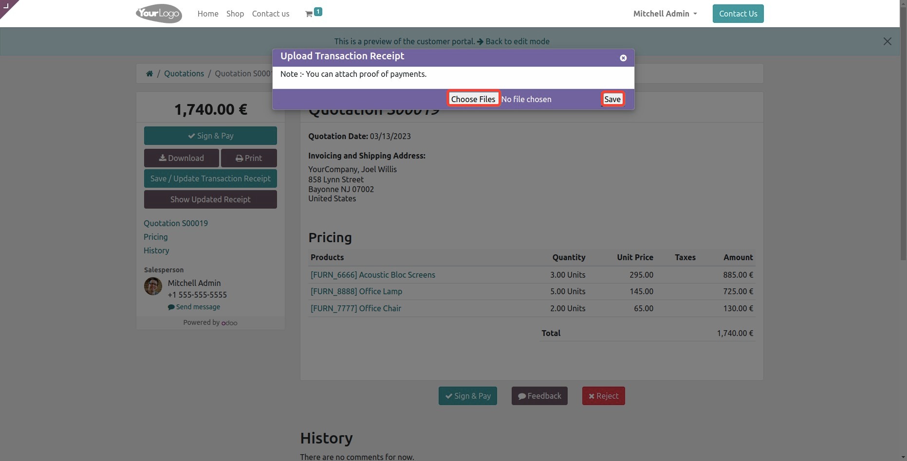 In this module user can attach their payment information while creating quotation or in the payment screen.