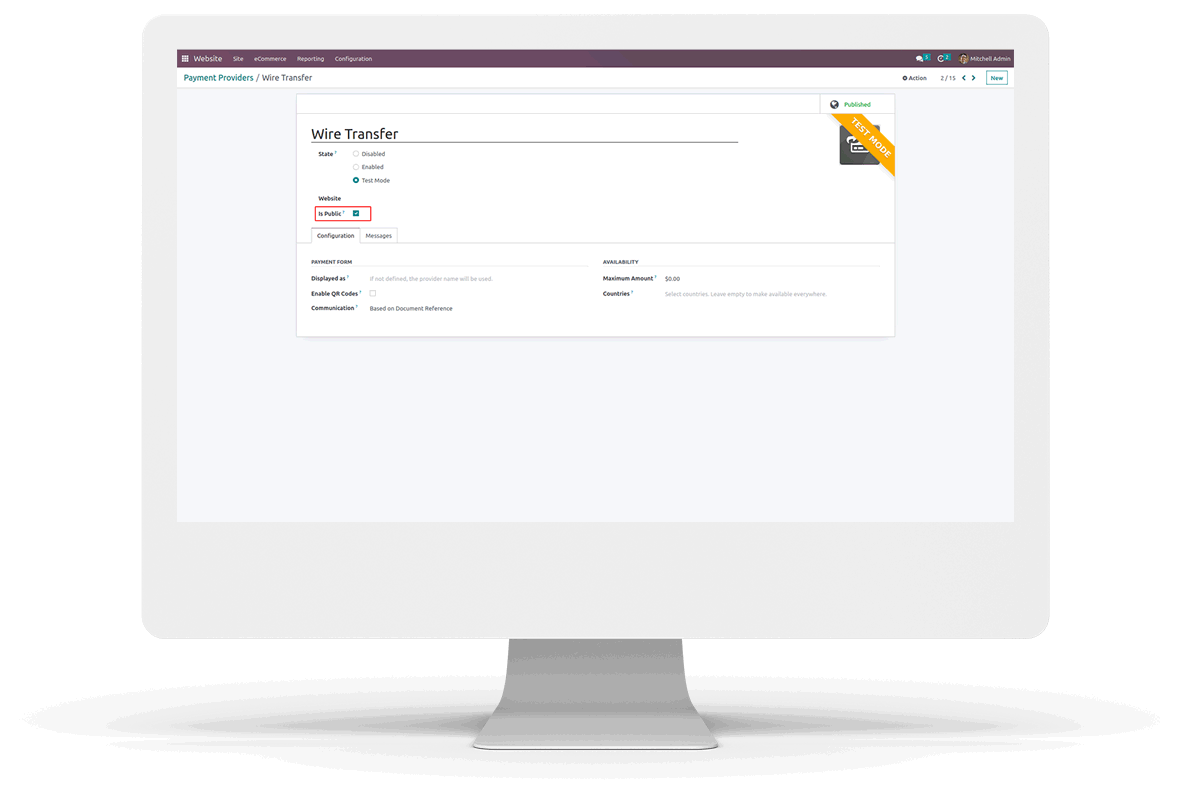 Open any payment provider by navigating to Payment Providers under Configuration on the Website, then enable Is Public.