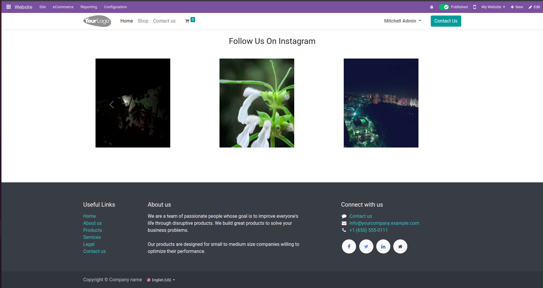 After that, once you save it, the Instagram widget will let you show your Instagram feed on your Odoo website as shown below.