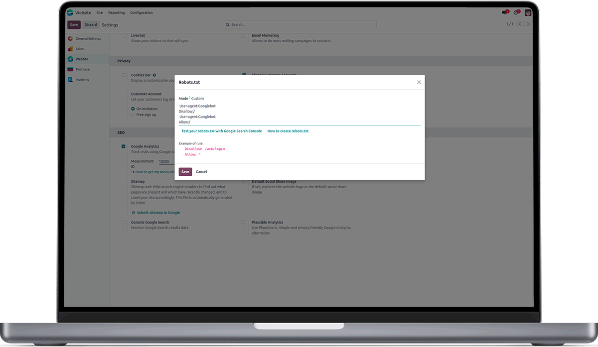 This Module Allows Users to Customize their robots.txt File, Informing Search Engine Crawlers About the Accessible URLs on your Site. Its Primary Purpose is to Prevent Overloading your Site with Requests.