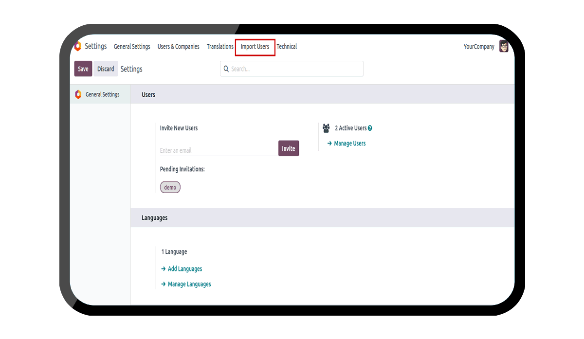 In default Odoo we need to configure users access rights after adding them into Odoo ERP system. This app allows to import users with UserName, Email ID, Language, User Type, Access Group, Access Technical Settings all these important fields.