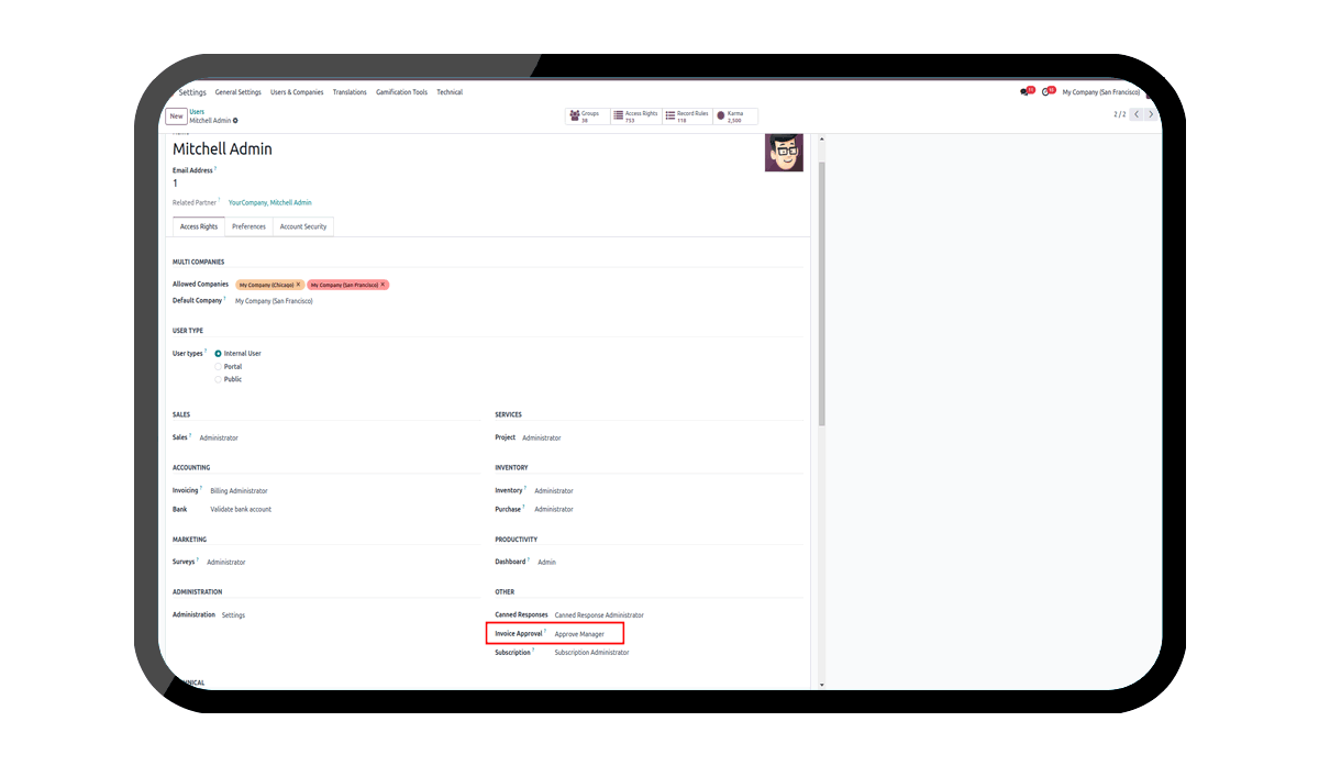 This module add the multiple approval option for invoice, bill, refund and credit notes with single or multiple approvals.