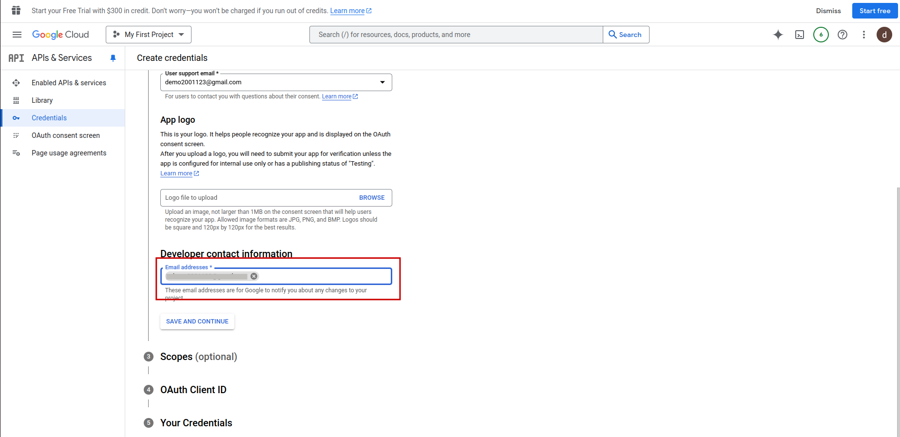 Enter the Client id, Client secret and Redirect Url in Credentials.