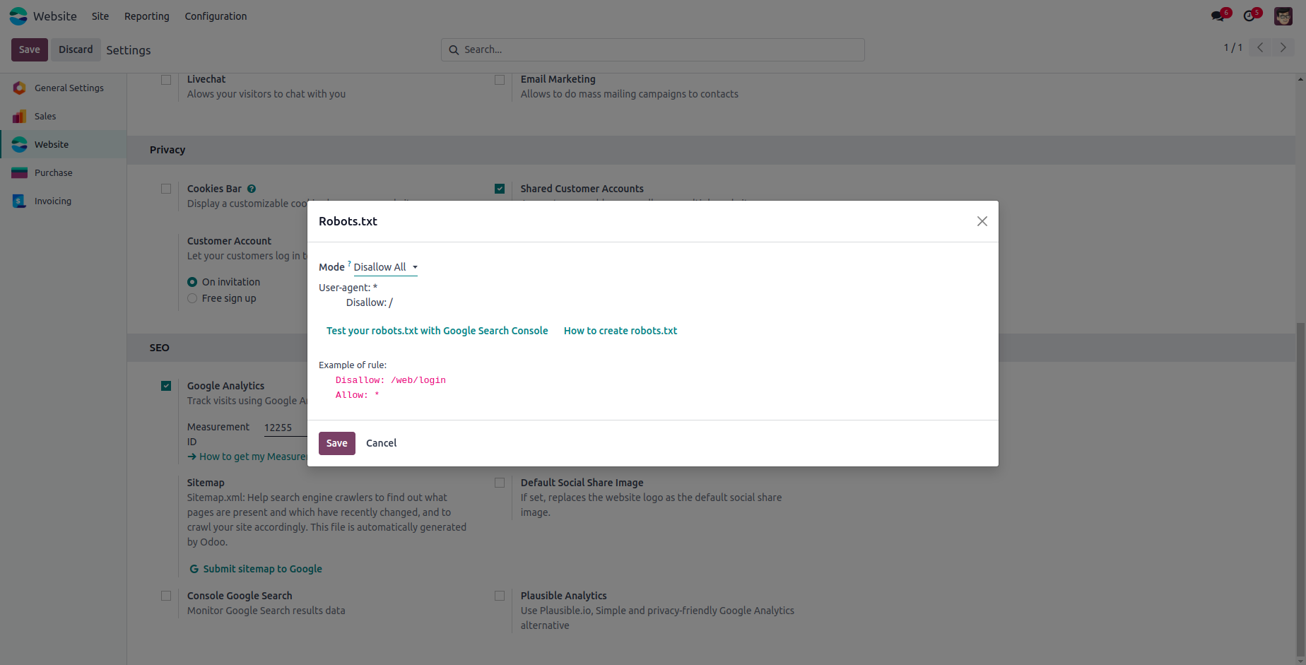 This Module Allows Users to Customize their robots.txt File, Informing Search Engine Crawlers About the Accessible URLs on your Site. Its Primary Purpose is to Prevent Overloading your Site with Requests.