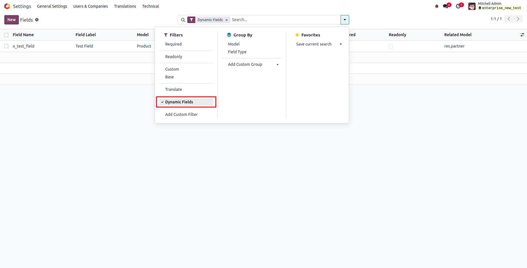 A Filter for Dynamically Generated Fields is Included in Fields From Settings.