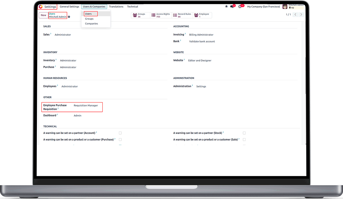 Manage Material Requisition of Employees and User.