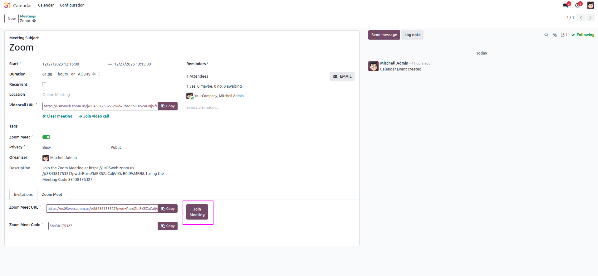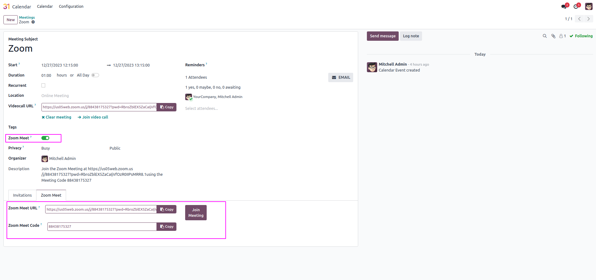 Create Zoom Meetings from Odoo Calendar.