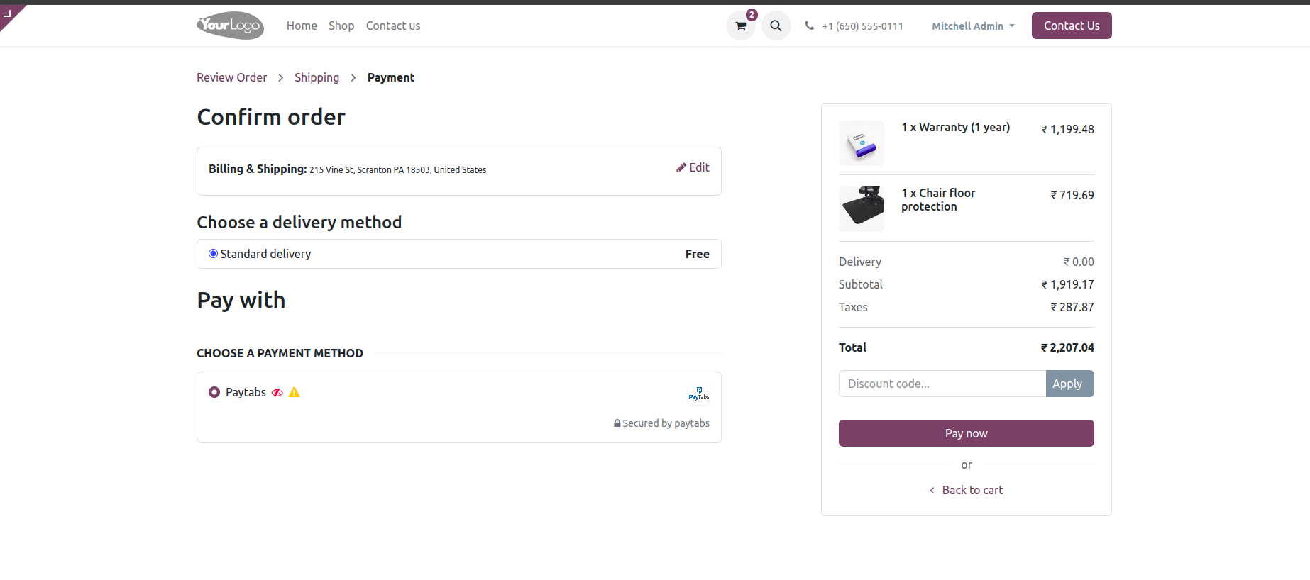 Clicking on the "Pay Now" button will initiate a seamless redirection to the PayTabs page for a secure and hassle-free payment process.