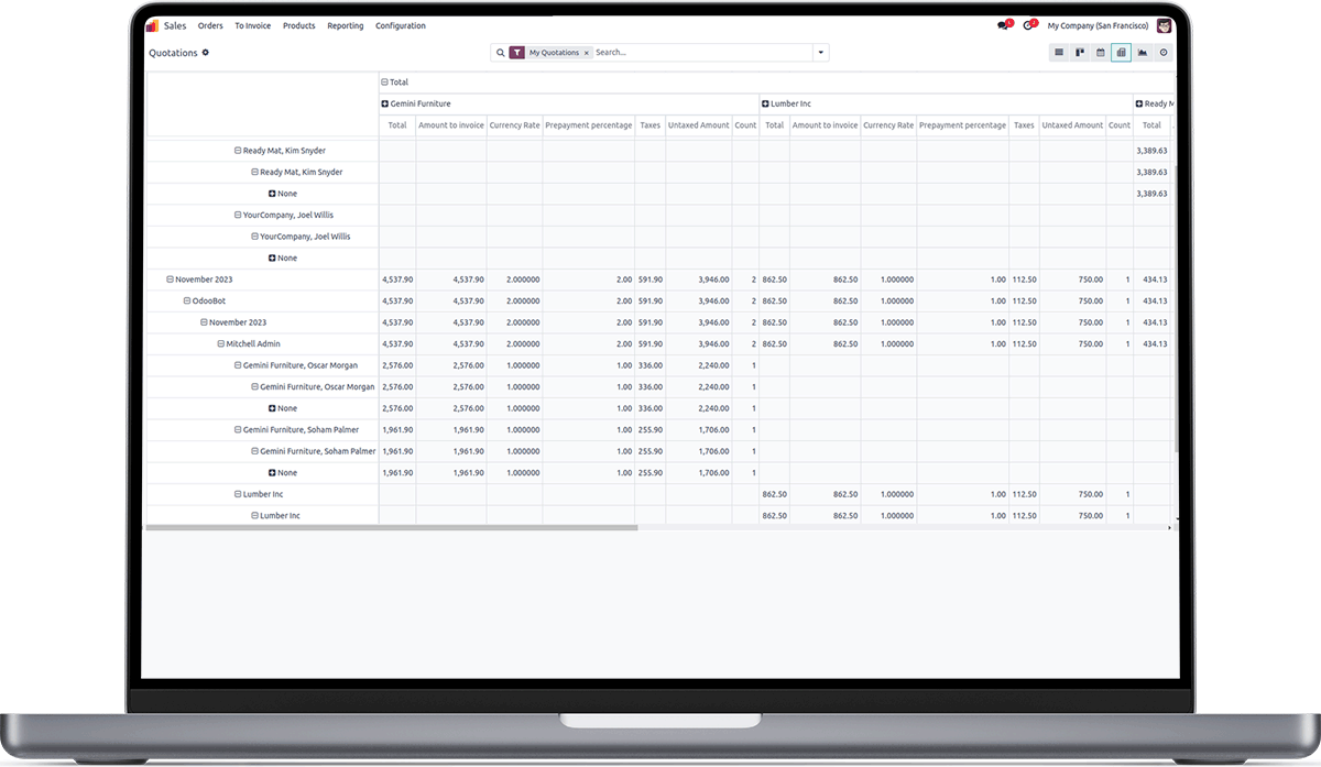 This module will ensure sticky pivot view and enhance the user experience so that the user will never lose the headers while scrolling (Horizontally and Vertically) the report.