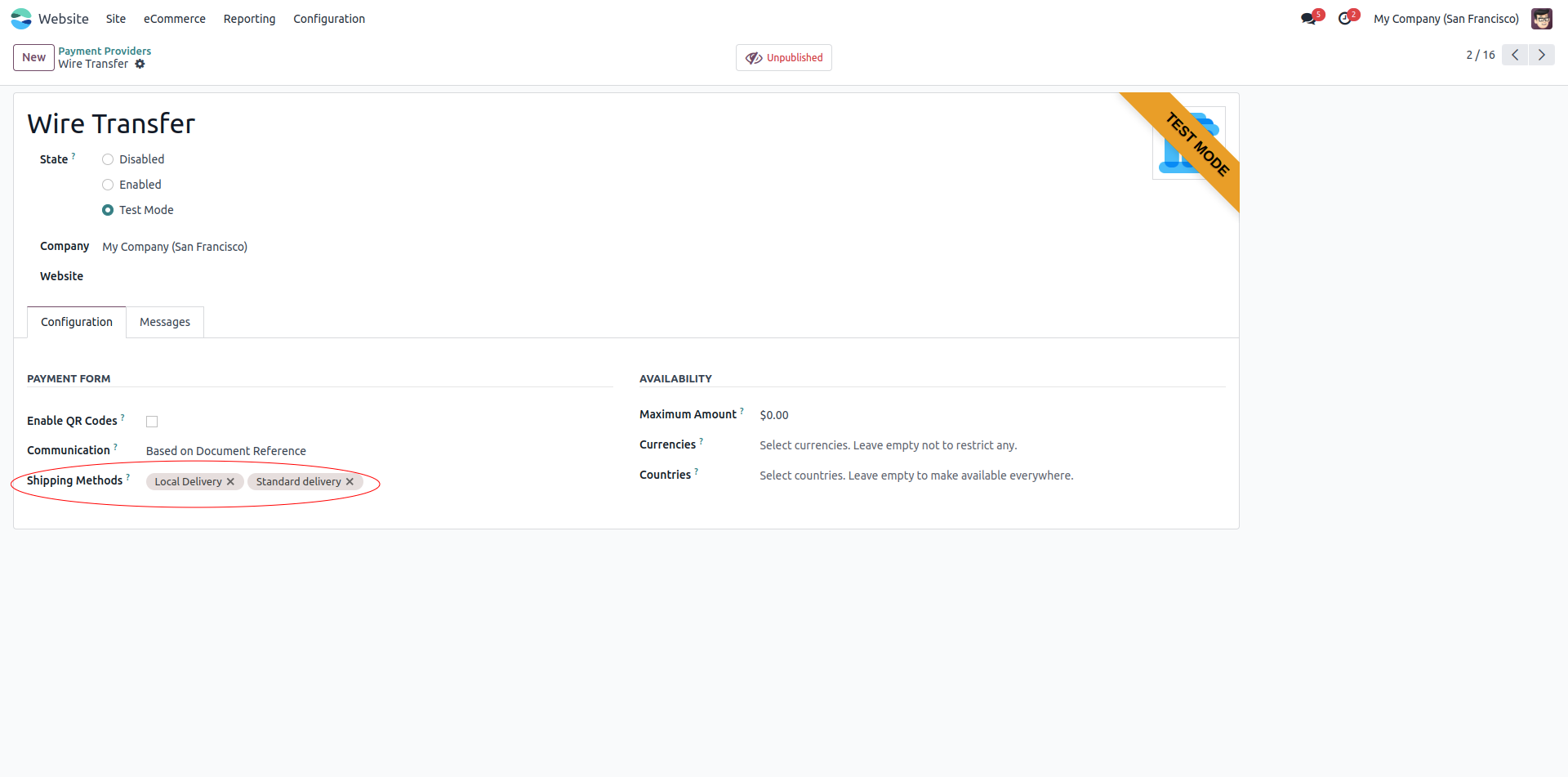 • Can configure the shipping methods such that it can be selected only with certain payment providers.
