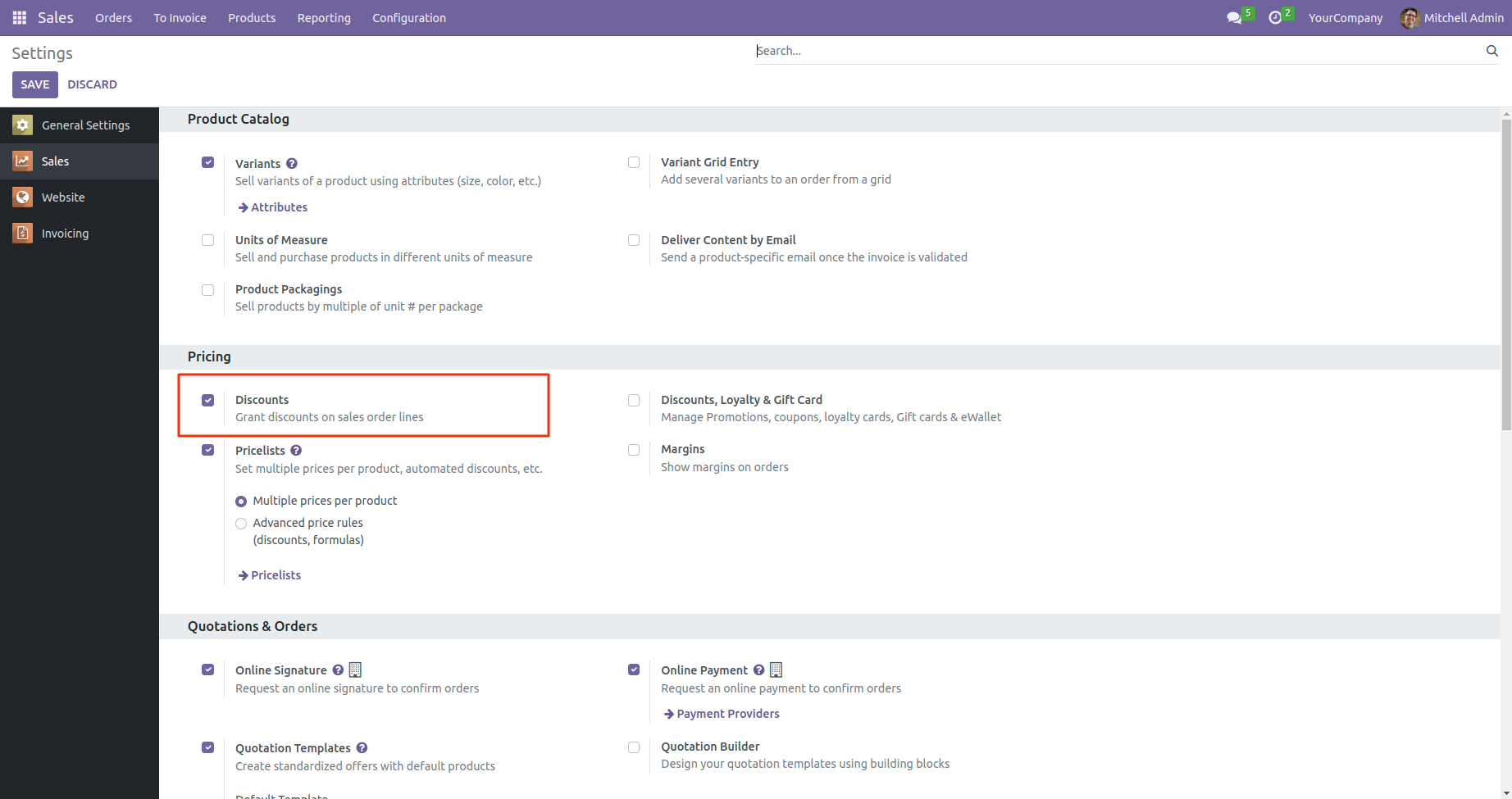 Go to Sales-> Configuration-> Settings. Enable 'Discounts'.