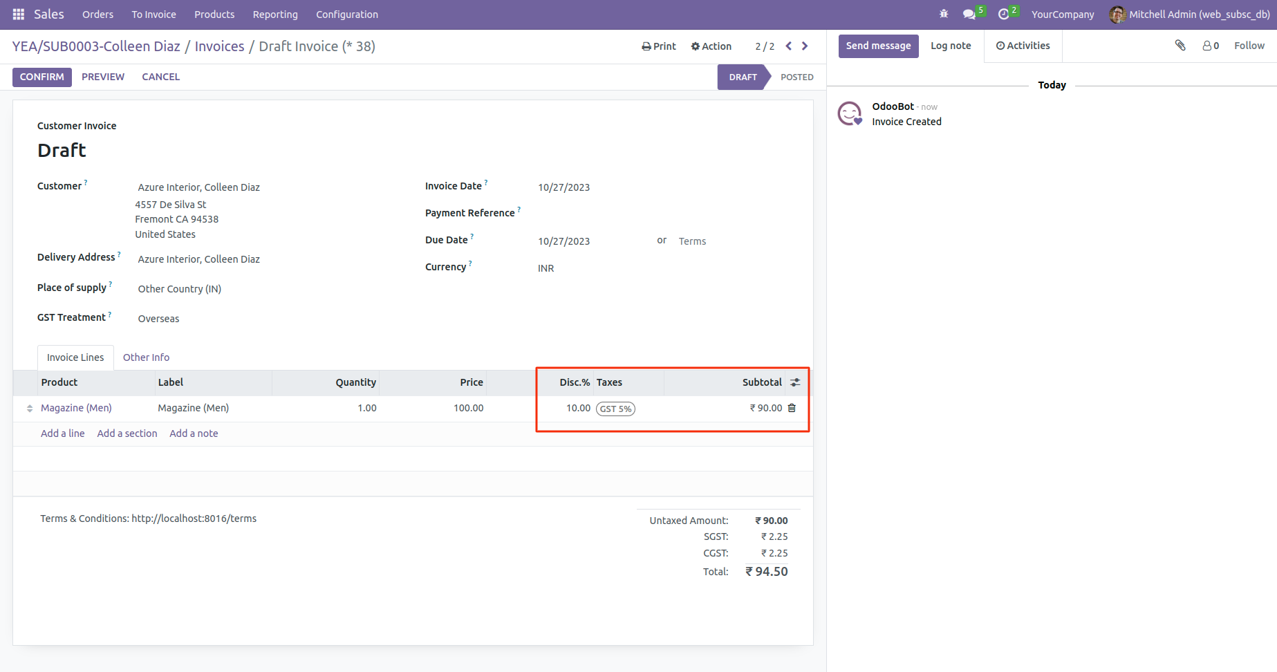 A recurring invoice will be generated for the subscription order according to the recurring period. Starting from the second invoice onward, variant-specific discount will be applied.