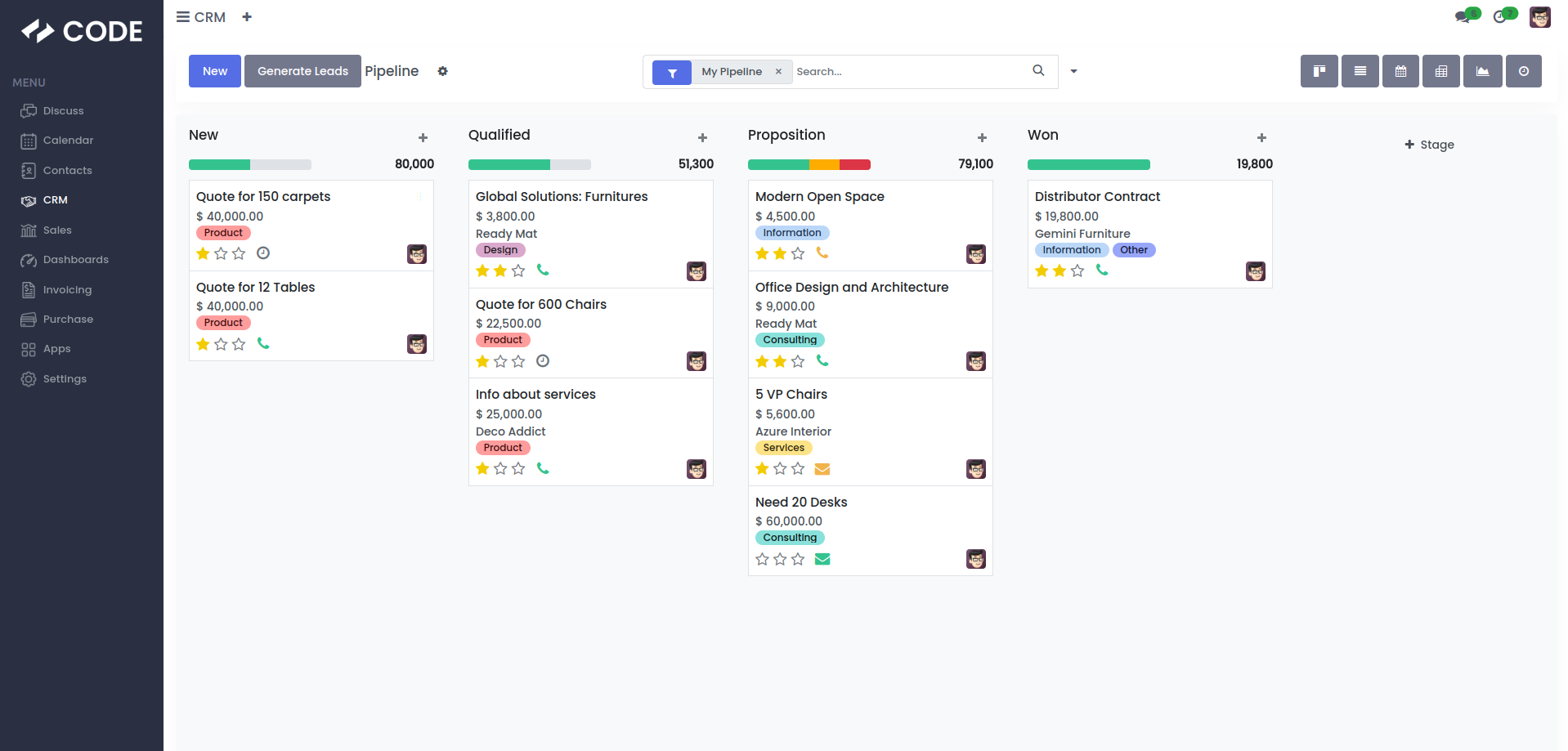 The Code Backend Theme V17 Gives You a Fully Modified Kanban View and Kanban Group View. The Section Wise Separated Stages give a Pleasant Experience And an Extraordinary Design To Your Content Tiles, Making The Tiles Look Great. It will Give You a Clean Layout with the New Color Combination and a Modified Font.
