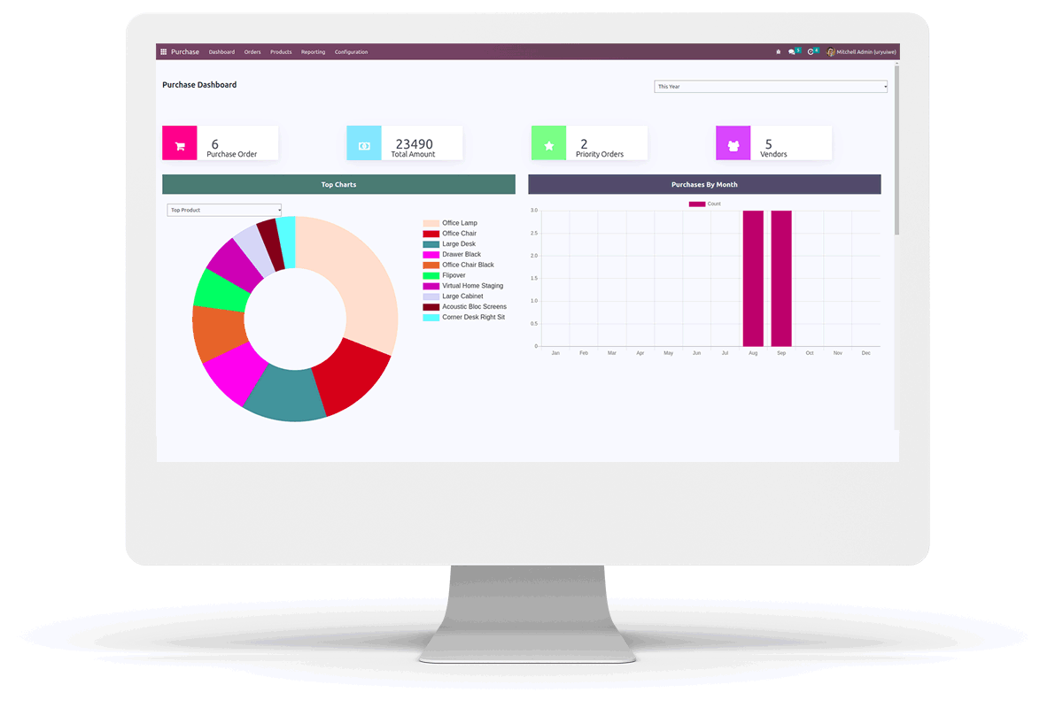 This is the pie graph for showing the top products, vendors, purchase representatives