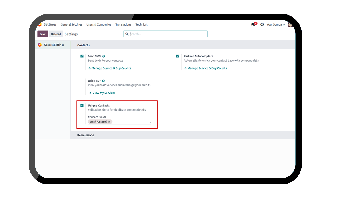 Enable the "Unique Contacts" field. Go to Settings --> Enable "Unique Contacts" field.