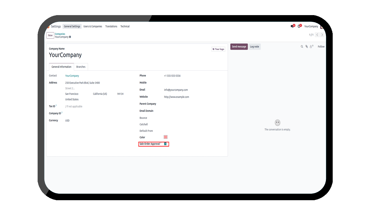 Enable the Sale Order Approval in the Company.