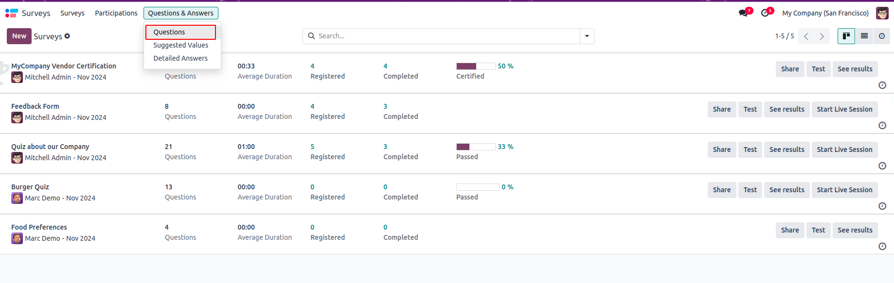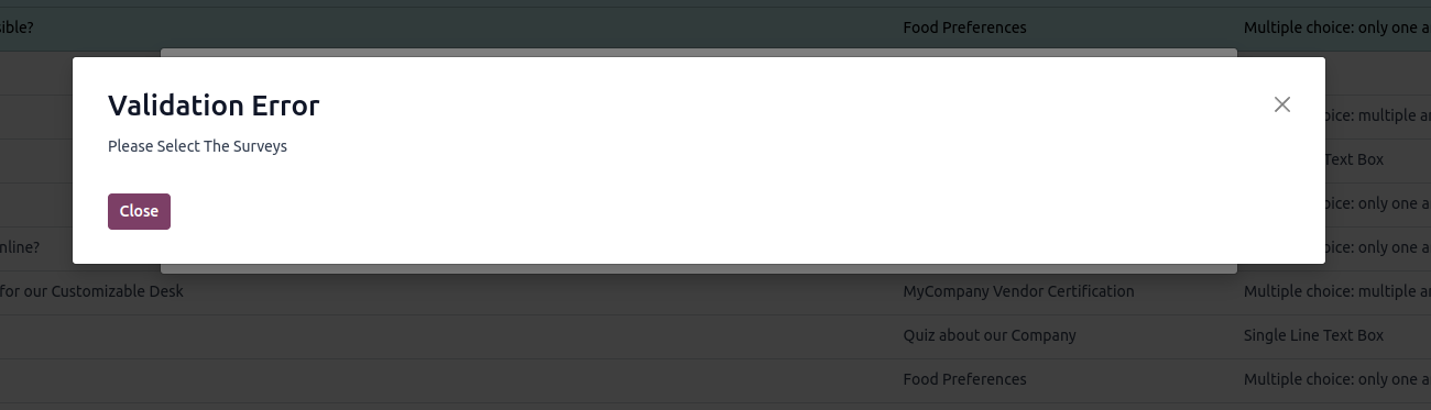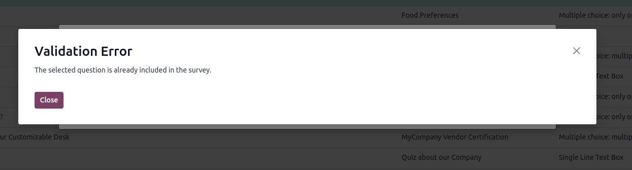 Also, an error will be shown if the user trying to add already existing questions to survey.