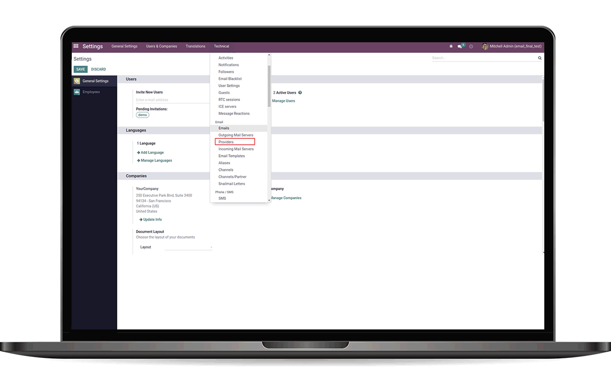 To create Providers, navigate to Settings -> Technical -> Providers.