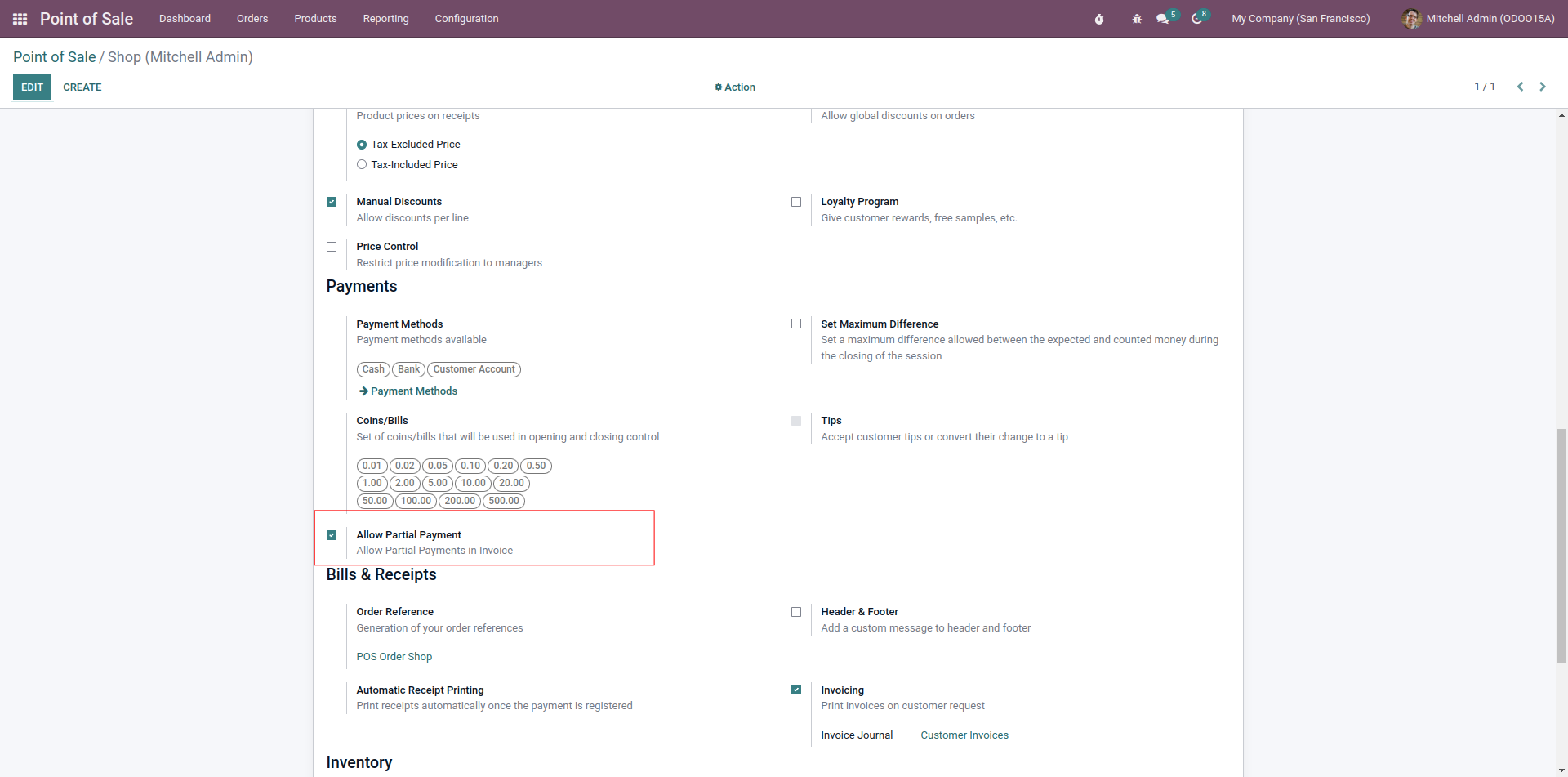 You have to enable Invoice and Partial Payment in Payment Screen to Allow Partial Payment in POS Screen.