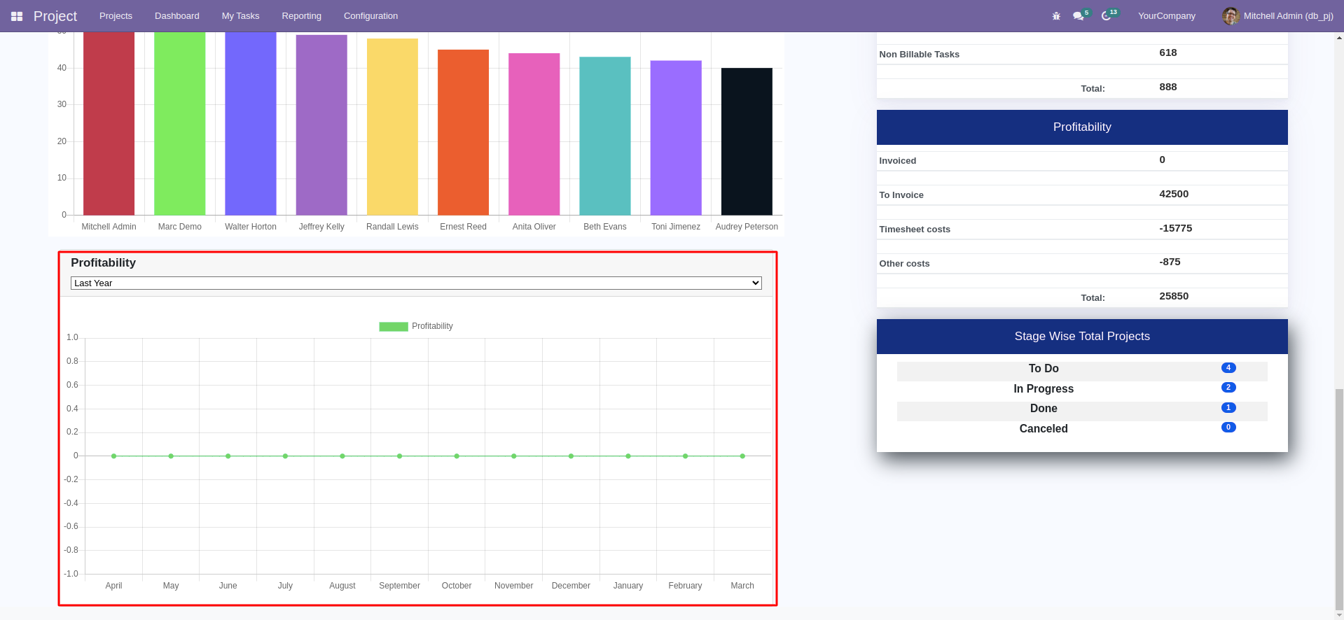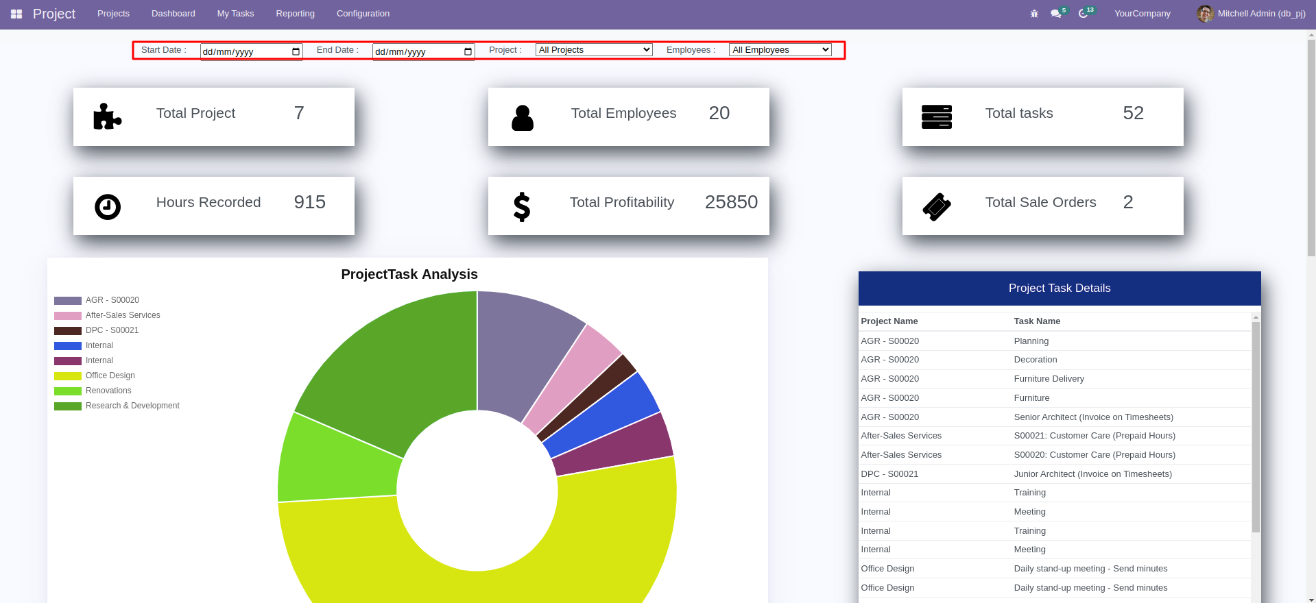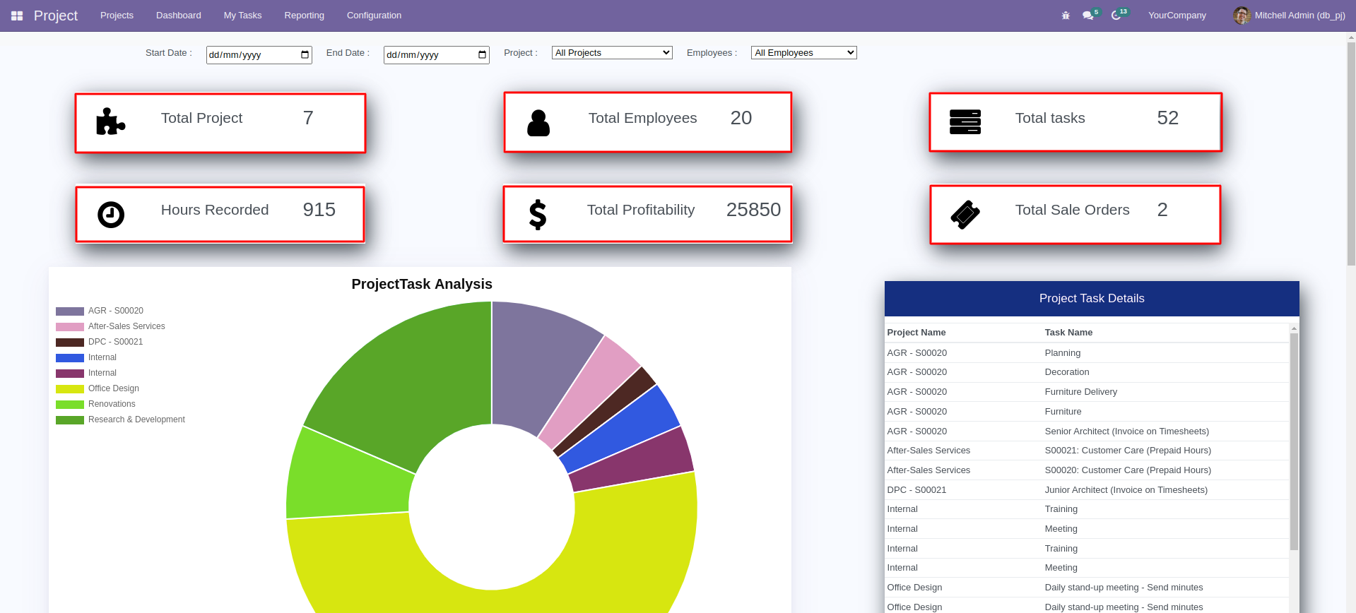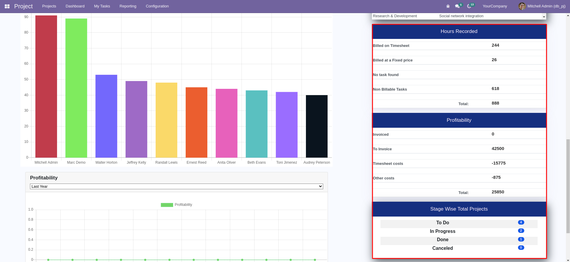 This module helps you to see the Overview of Project, here You can see the task, Employees, Timesheet, etc