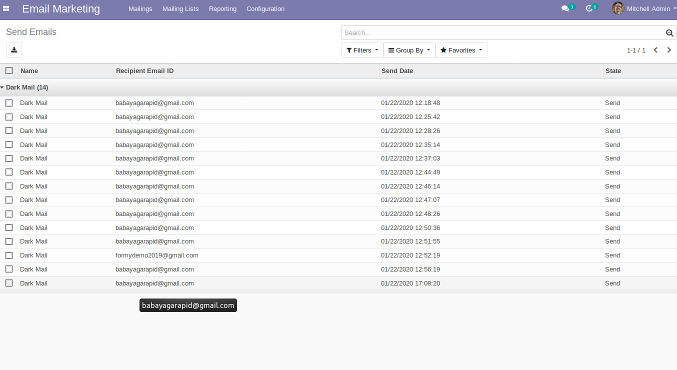 If any error record occurred it can be resend to that mail. Here action have a button Resend Error Mails , it will be resend mails to the selected error records. If the error record sending completed, The state will be change to Send.