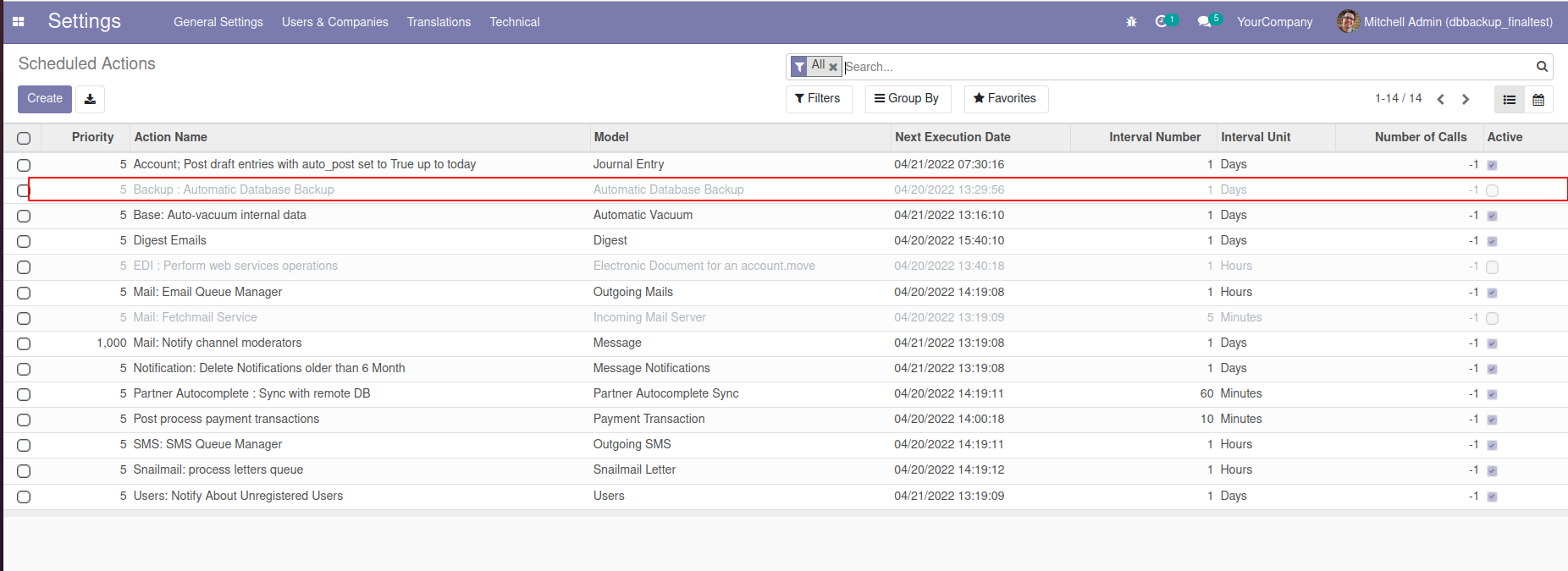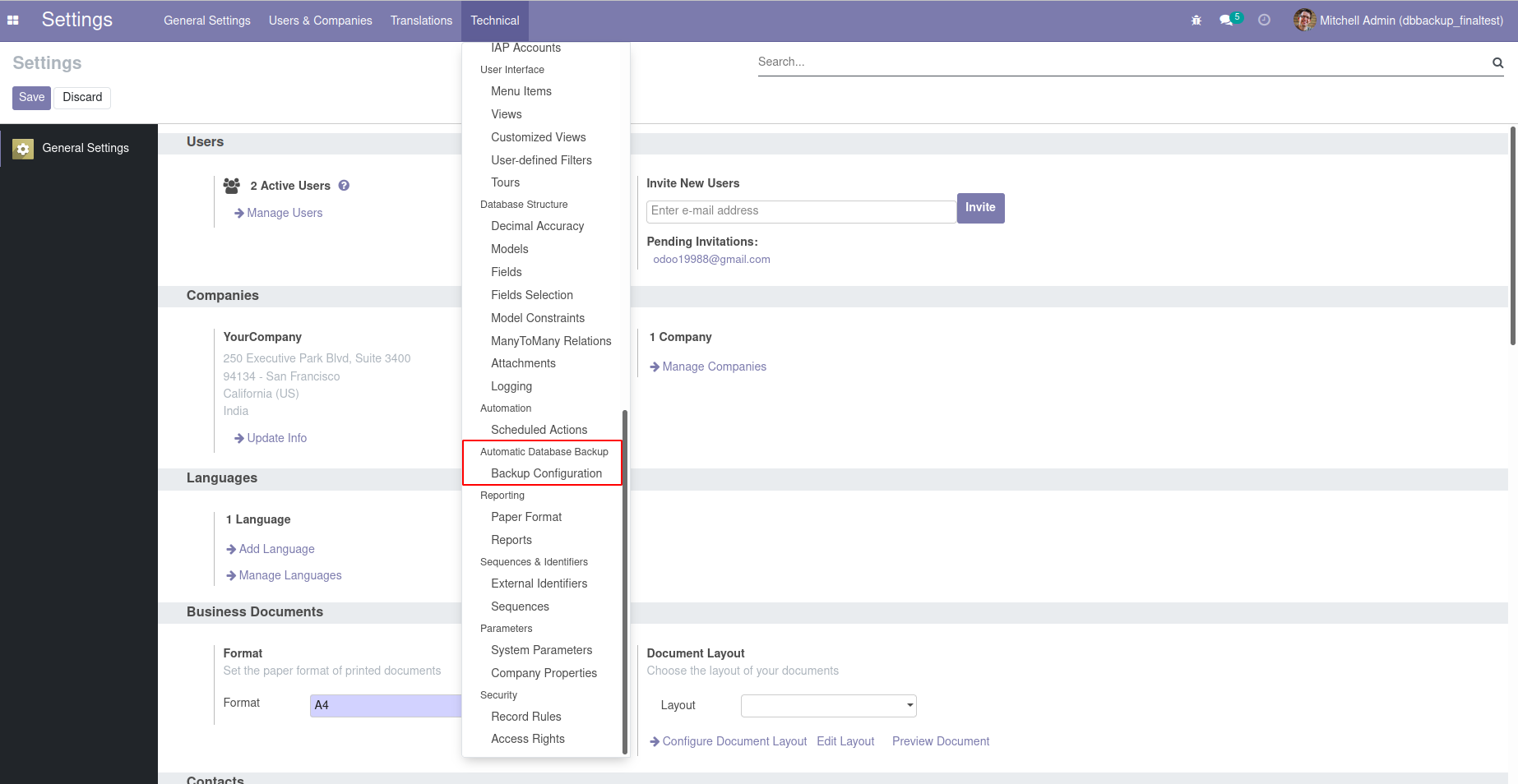 Got Setting --> Technical --> Backup Configuration to configure backups