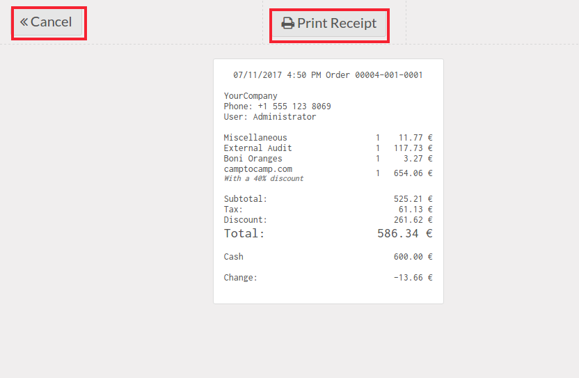 The 'Print Receipt' button can be used to download this order in a pdf file.