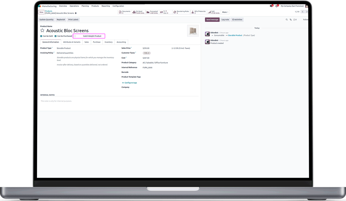 We can click on the checkbox "Catch Weight Product" to Enable The Catch weight on the selected product.