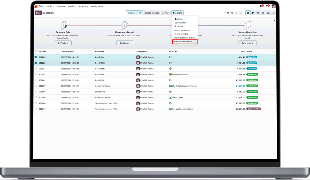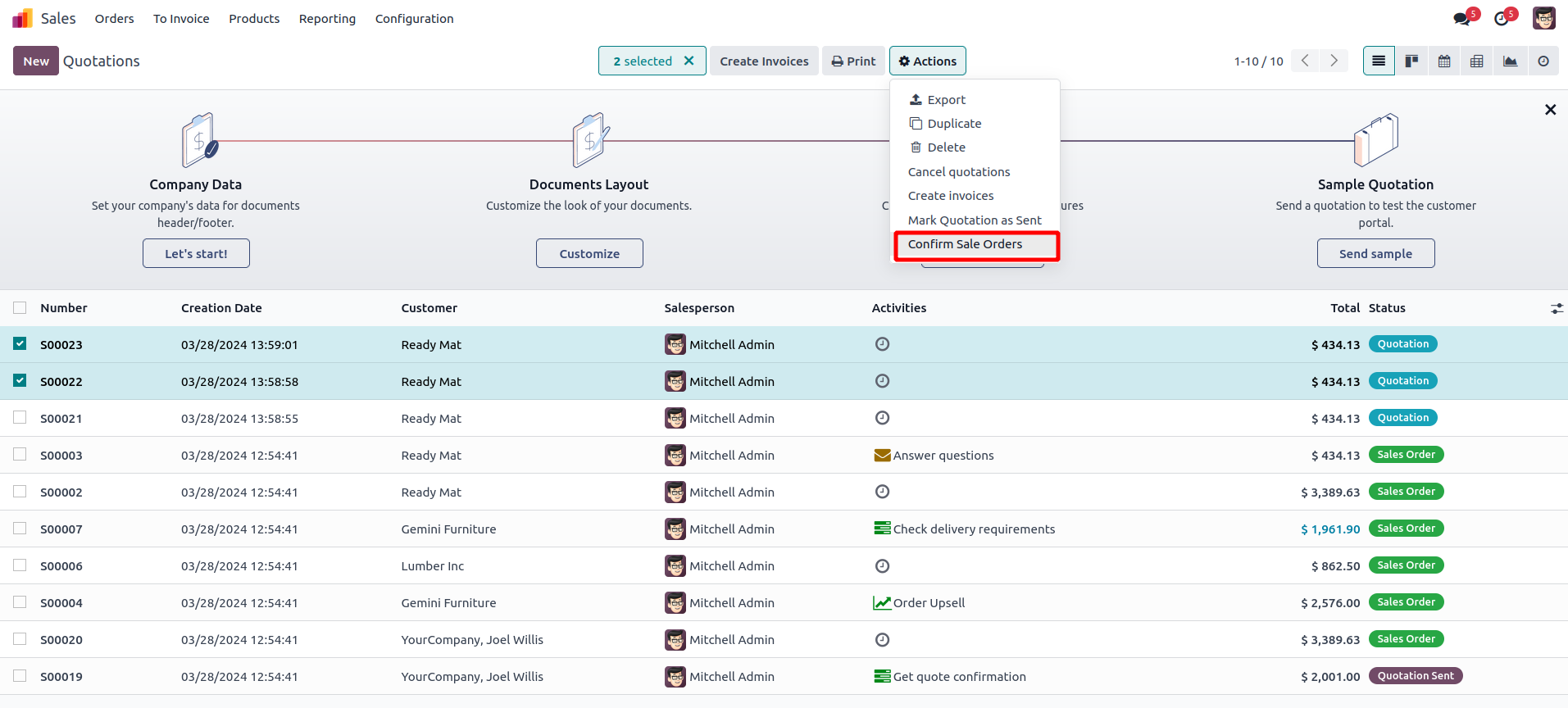 Can Confirm Multiple Sale Orders and Purchase Orders.