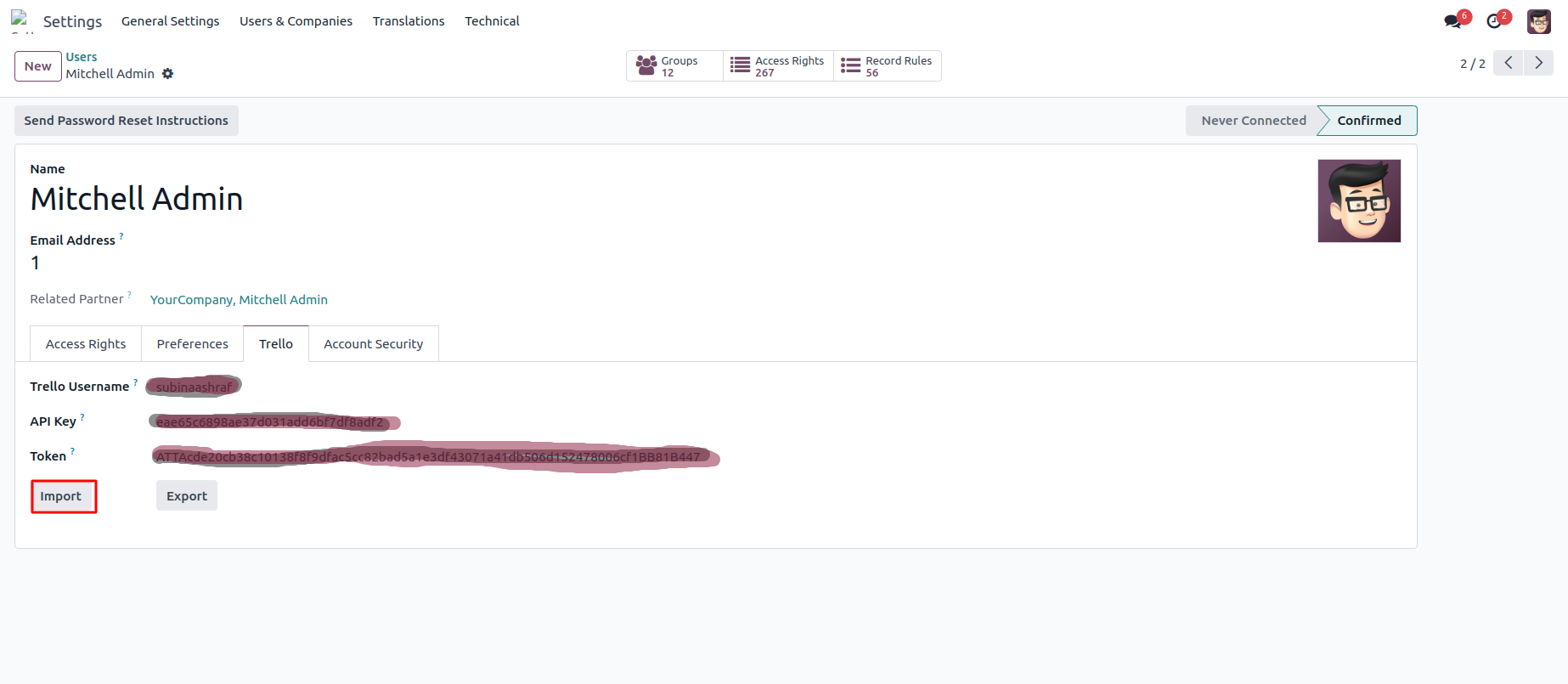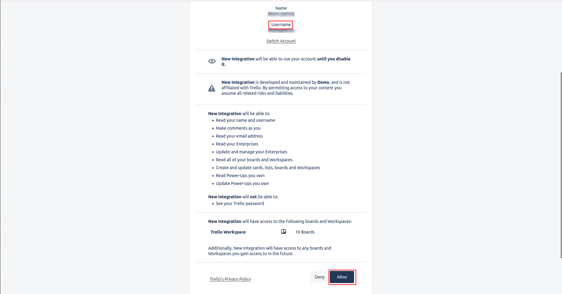 Click on Generate a new API key button under API key tab. Click Token to generate Trello token.