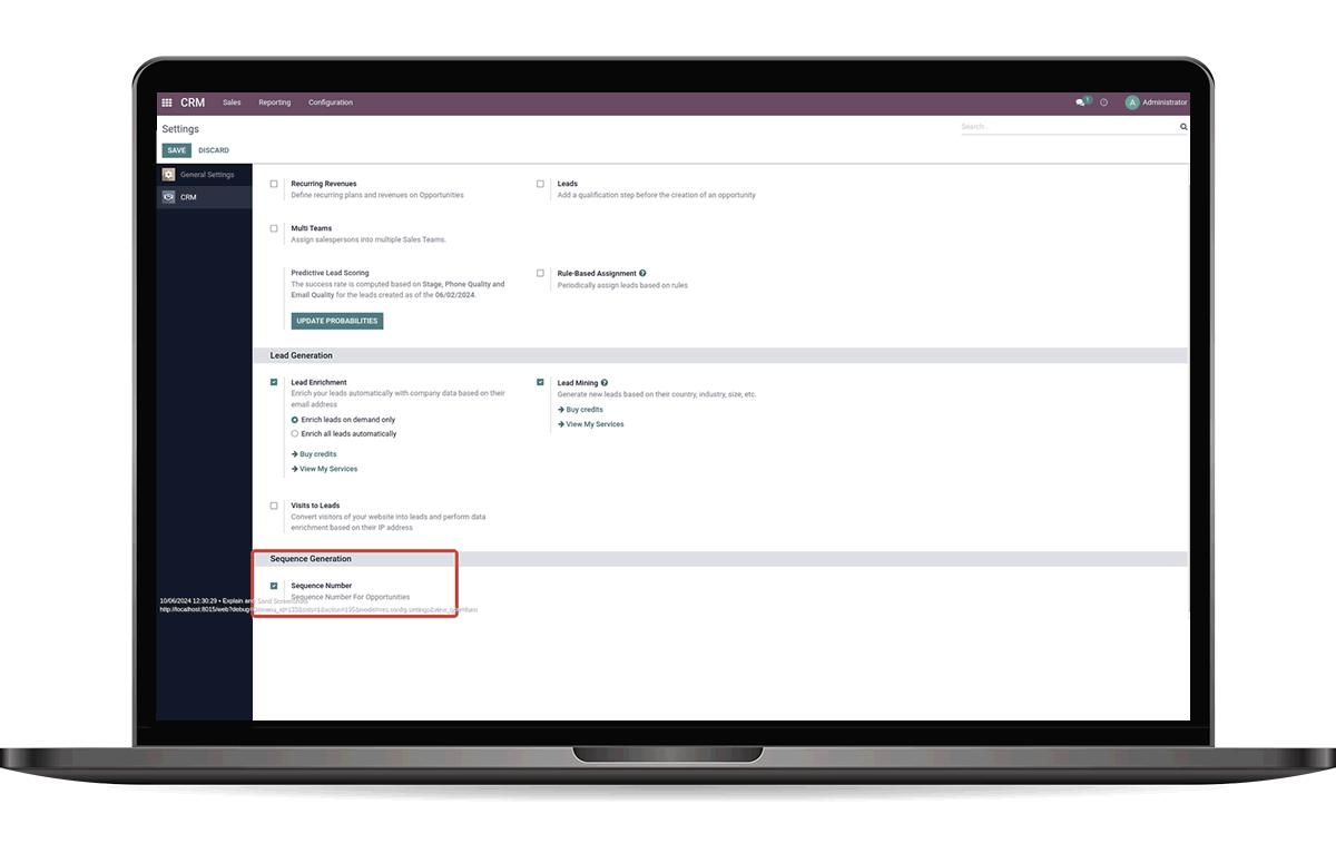 Enable the Sequence Number boolean field in the CRM Configuration
