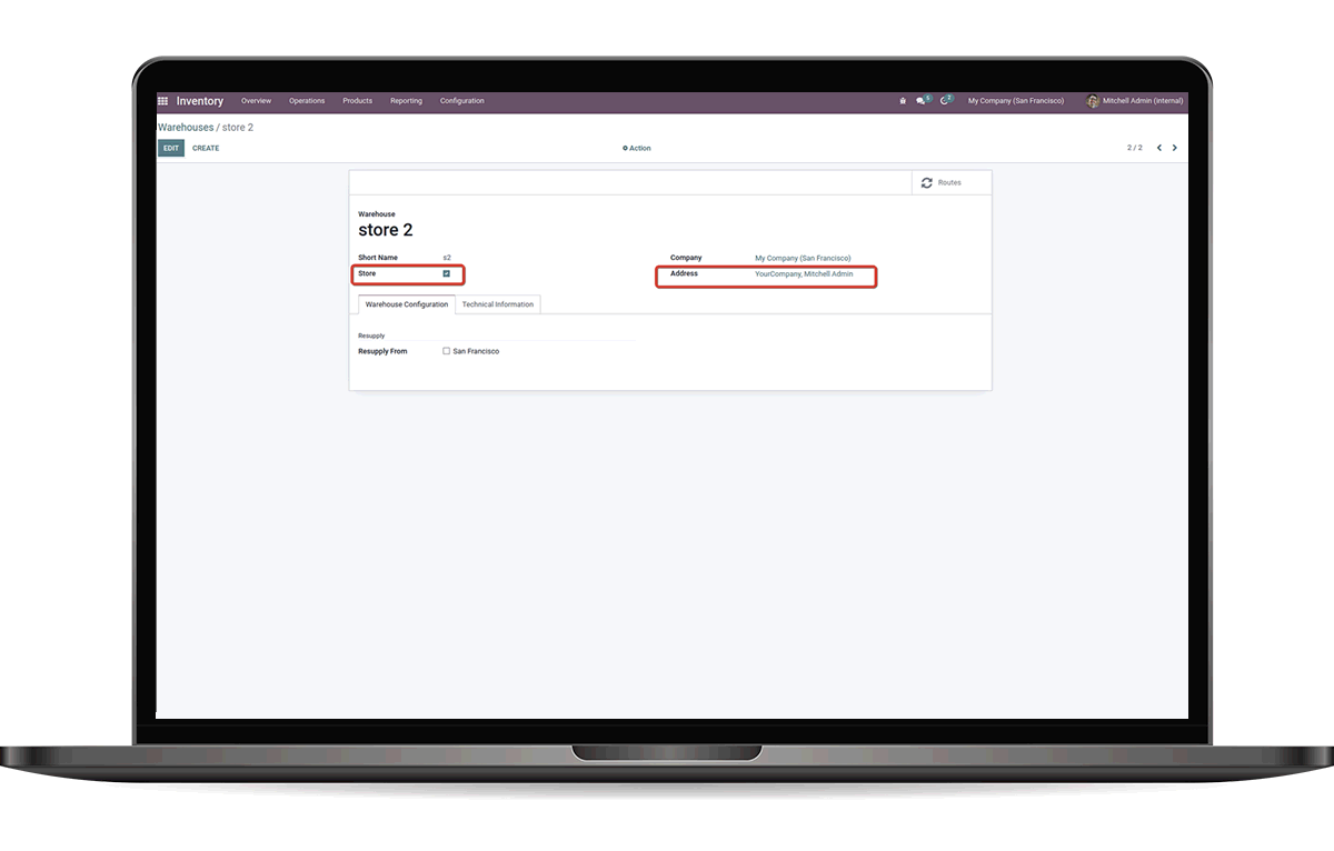 Choose the Warehouse in Inventory as Store by enabling the In-Store option.
