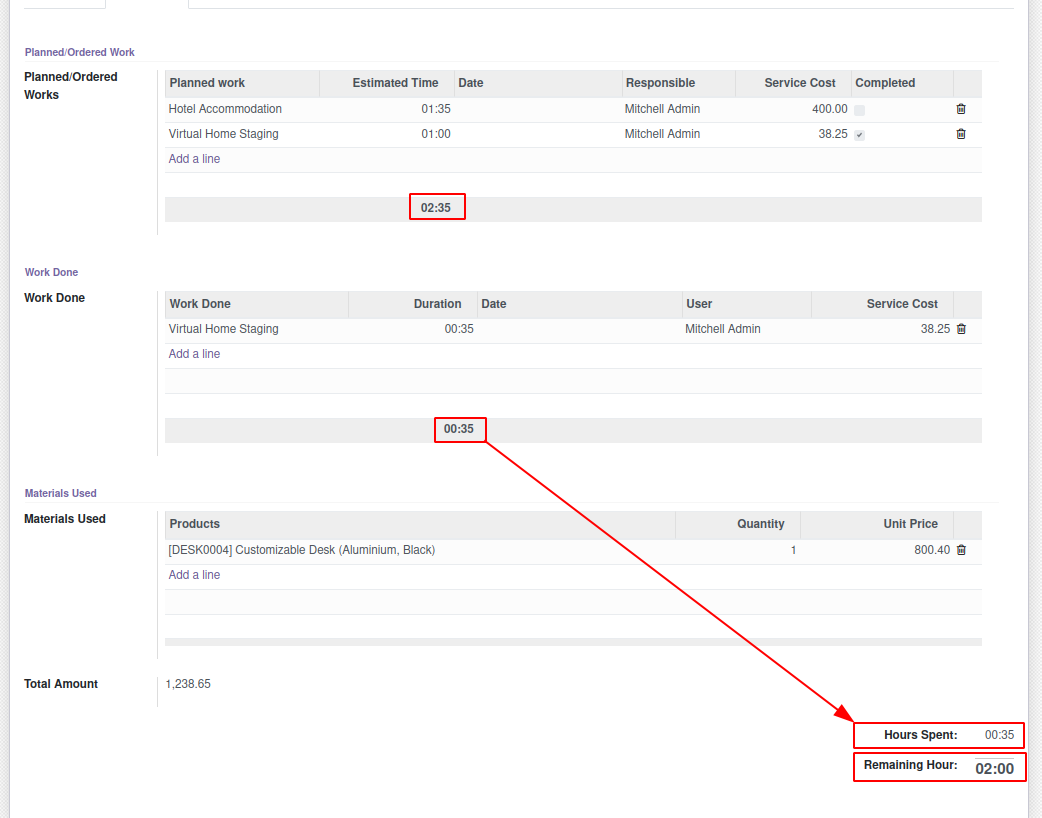 Remaining Hour is total time left(Difference between Total Time and Hour Spent).