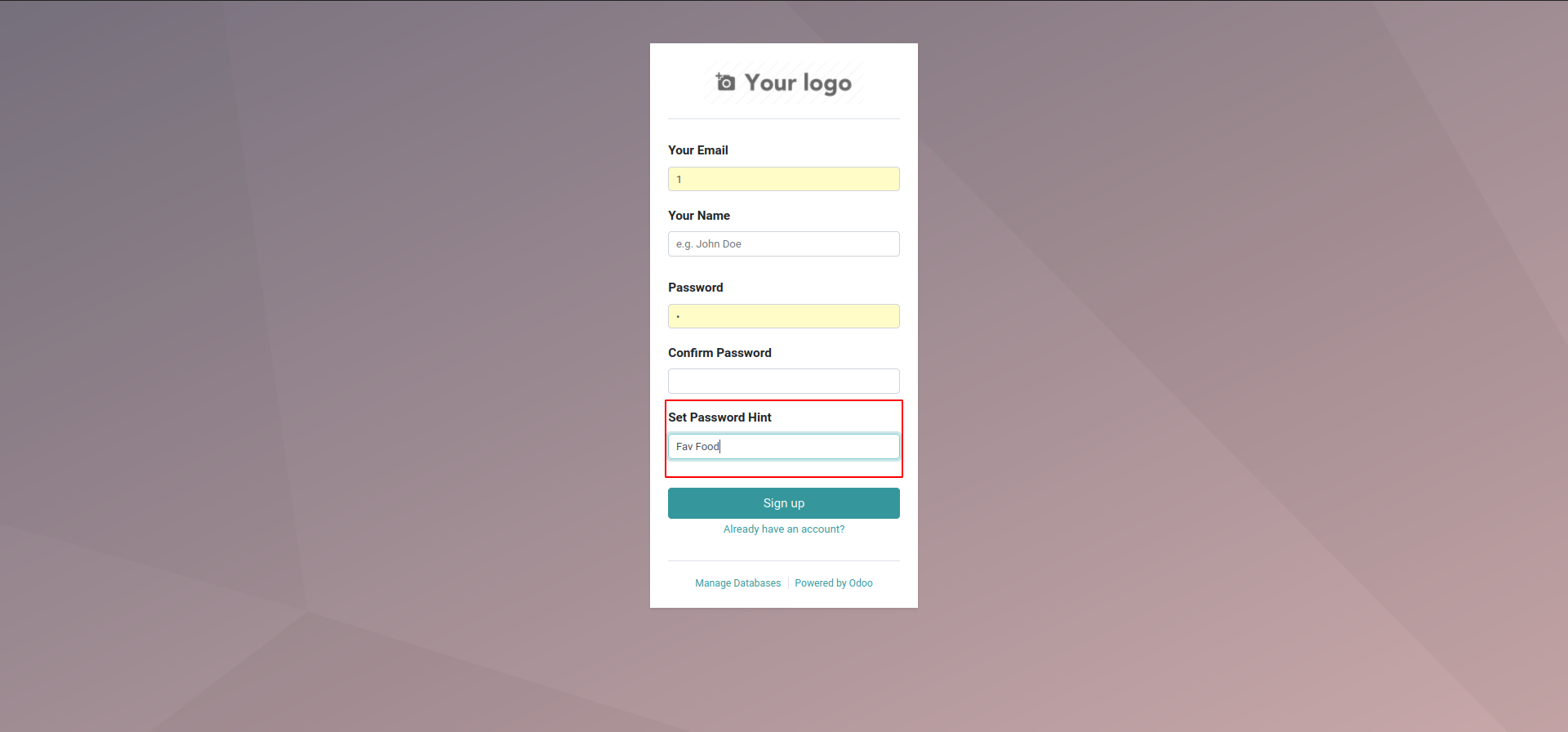 If there is a Password Hint in the corresponding user form, the popup will show the Password Hint.