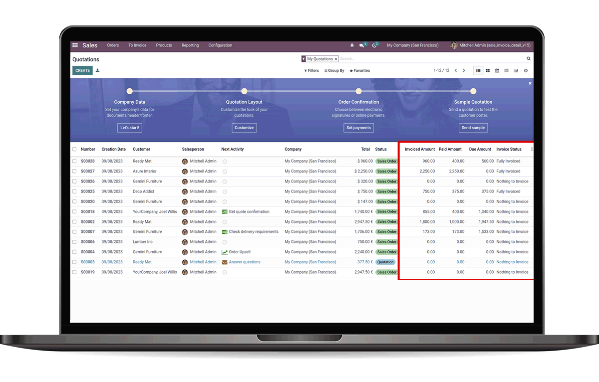 You Can View the Invoiced Amount, Paid Amount and Due Amount on Sale Orders List View.