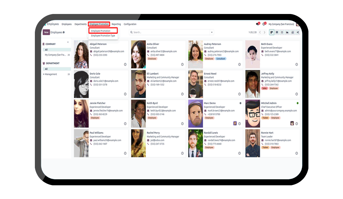To Manage Employee Promotion Process Flow and Employee Promotion History Log on Employee Screen.