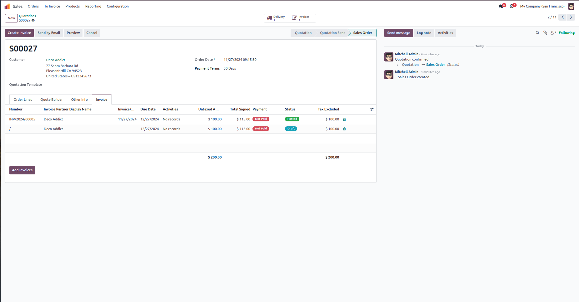 Here we can see all Invoices that are linked to the Current Sale Order.