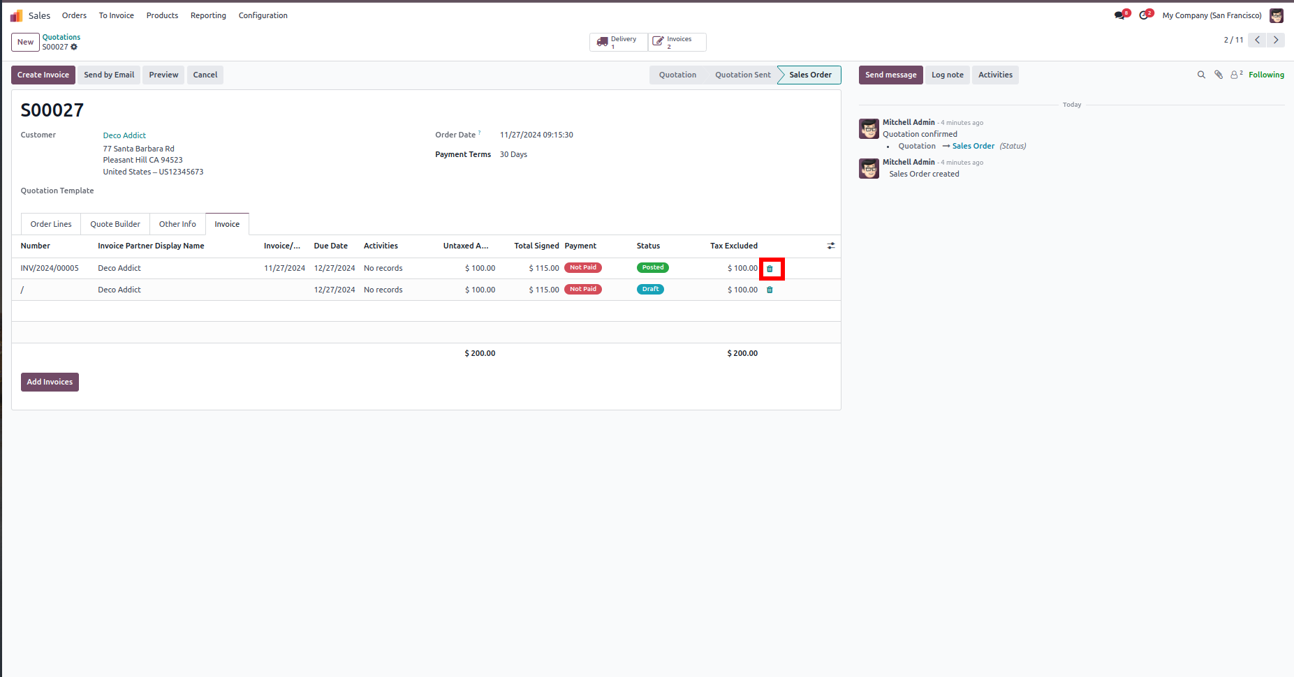 If want to Unlink Invoice from Order , Click Delete Icon.
