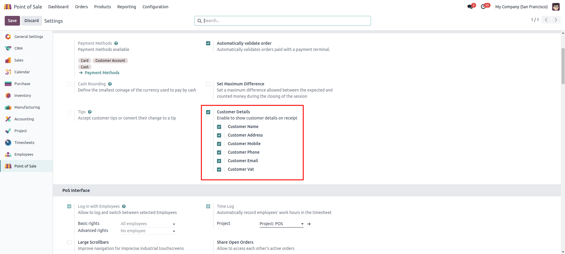 After Enable the condition in the settings You can see the enabled details are shown in the pos receipt.