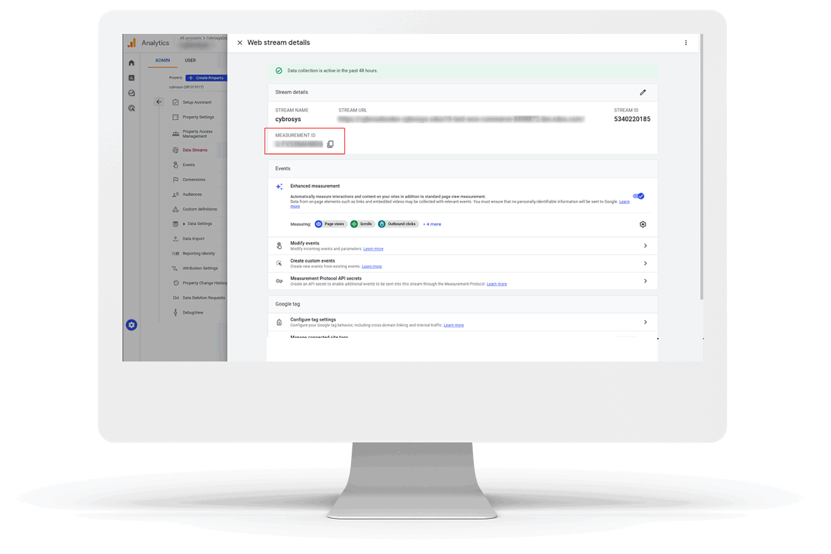 After that you can see your stream in data stream and copy the 'MEASUREMENT ID' from there