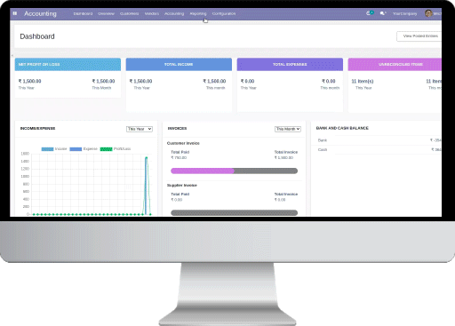 built under the V14 platform. It facilitates the dynamic financial report of general ledger, trial balance, balance sheet, profit & loss, cash flow statements, partner ledger, partner ageing, day book, bank book and cashbook.