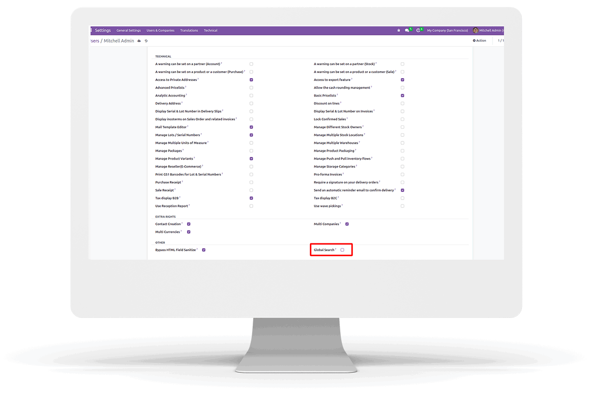 Easy Search in Customers, Products, Sale, Purchase, Inventory and Accounting modules