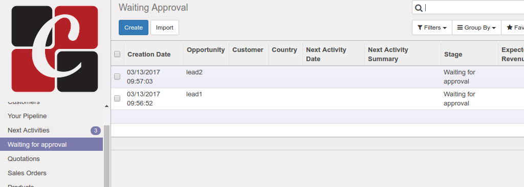 In the 'Waiting for Approval' stage, a lead will be visible only to the administrator, the user to which the lead is assigned to and the head of sales of team that the lead belongs to. When we select a lead in the 'Waiting for Approval' stage, we can see the stages, the lead comes from and where the lead is headed to.